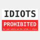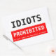 idiots prohibited rectangular sticker