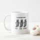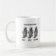 Three skeletons with IDK, IDC and IDGAF printed on coffee mug.