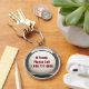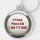 "If Found, Please Call 1 888 777-6666" in red text on a big round button key chain on a white background and a silver metal look shiny border that gives a cool 3d look. Never lose your keys again! A great idea in case you lose your keys! Easily add your own custom phone number or address. Makes a great, unique, funny, but seriously useful, gift for those people in your life who are always asking "Where are my keys?!"