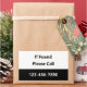 If Found Please Call appears along with digits to change to your phone number. The lost and found sticker is black and white. You can also edit the text if desired.