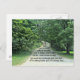Wooded path with words of faith and comfort: "If God were to walk with us and talk with us today, what would we do - what would we say? Live each day as though God were here - He's walking beside you, He's always near."