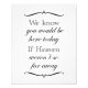 This beautiful wedding memorial print will be a special way to honour those that are forever in your hearts. The design features the wording "We know you would be here today if Heaven weren't so far away" in a combination of black swirl and block fonts. Black accents on top and bottom complete the sign. This is perfect to place on a chair at your wedding ceremony to honour someone special.