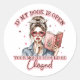 Charming illustration featuring a woman with her finger to her lips holding an open book. The colourful text reads: "If my book is open, your mouth should be closed ". This design is available on a wide variety of products.