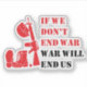 The phrase "If we don't End War, War will end Us" emphasises the urgent need for peace and conflict resolution in a world where violence and warfare threaten humanity's survival. Such a sticker serves as a provocative reminder that continuous warfare can lead to catastrophic consequences, urging individuals and societies to actively pursue alternatives to violence and work towards lasting peace.