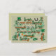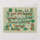 Adorned with a charming design, this postcard features a symbolic ensemble that includes a Lucky Horseshoe, a 4-leaf clover, a tall Irish Top Hat and a short rounded top hat both worn by leprechauns commonly referred to as a "shamrock hats" or simply "leprechaun hats." They are often green and are symbols associated with Irish folklore and St. Patrick's Day celebrations and finally last but not least is the iconic Irish Flag dispersed throughout the uplifting quote. Each element adds a touch of Irish charm, representing luck, tradition, and the rich cultural tapestry of the Emerald Isle.