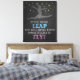 With a "chalkboard" texture in the background, this inspirational gymnastics canvas print is sure to please any gymnast. It features a gymnast mid-leap among a group of stars. The text reads, "If you never leap, You will never know what it's like to fly!".