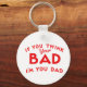 IF You Think I'm Bad, I'm Your Dad" design for a keychain is a humourous and bold statement for fathers who enjoy a playful, edgy vibe. The design features a witty phrase, "If You Think I'm Bad, I'm Your Dad," in bold, eye-catching fonts. The text can be accompanied by a graphic of a dad figure or playful elements like a mischievous smirk, a dad-bod silhouette, or a classic comic-style speech bubble to emphasise the playful tone. This design appeals to dads who love to joke around with their kids and embrace their role with humour and confidence. Ideal for Father's Day, casual outings, or just making a fun statement at home.