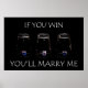 If you win you'll marry me. Closeup view of three overturned shot glasses with dices, tiles or dies inside each glass. Isolated against black background. Missing Impossible!