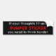 Black background, white and red letters: "If your thoughts fit on a bumper sticker, you need to think harder"