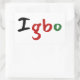 A lovely sticker, this item features "Igbo" in colourful black, green, and red colours. The background is white but can be customised as your suit. Choose from a variety of shapes.