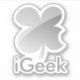 iGeek funny Apple parody vinyl laptop sticker. Clover with bite logo. Make your own fun version. Cool gift for programmer, developer, MAC fan etc.
