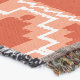 Classic Aztec tribal pattern with a striated, Ikat woven texture - Rust orange accented with white on a soft coral orange / terracotta background