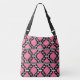 Classic Aztec tribal pattern with a striated, Ikat woven texture - Fuchsia pink pattern accented with white on a black background print bag
