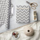 Digital reproduction of an Ikat chevron pattern with a linen texture - Silver grey / grey with a white background wrapping paper