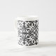 Ikat damask pattern - Black and White Bone China Mug
