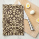 Ikat damask pattern - Chocolate Brown and Tan Tea Towel