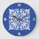 Ikat damask pattern - cobalt blue and white large clock