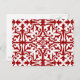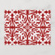Digital reproduction of a damask medallion pattern with a striated, Ikat woven texture - Creamy white on a dark lipstick red background