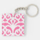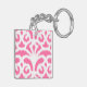 Ikat damask pattern - Fluorescent Pink Key Ring
