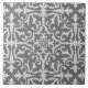 Digital reproduction of a damask medallion pattern with a striated, Ikat woven texture - medium grey / grey on a light silver grey background