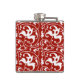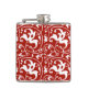 Ikat Floral Damask - Dark Red and White Hip Flask