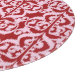 Intricate Moorish arch pattern with an Ikat woven texture - pale, strawberry pink on a deep red background