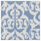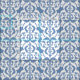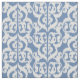 Intricate Moorish arch pattern with a striated, Ikat woven texture - white on a soft sky blue background