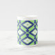 Ikat Pattern - Green, Indigo Blue and White Bone China Mug