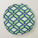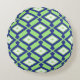 Ikat Pattern - Green, Indigo Blue and White Round Cushion