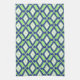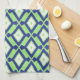 Ikat Pattern - Green, Indigo Blue and White Tea Towel