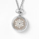 A delicate, lacy snowflake pattern on a solid background with a striated, Ikat woven texture - white snowflake on a deep taupe tan / stone ground
