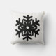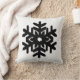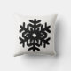 A delicate, lacy snowflake pattern on a solid background with a striated, Ikat woven texture - black snowflake on a white background square pillow