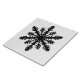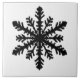 A delicate, lacy snowflake pattern on a solid background with a striated, Ikat woven texture - black snowflake on a white background