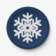 Ikat Snowflake - White and Dark Navy Blue Paper Plate