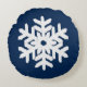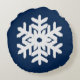 Ikat Snowflake - White and Dark Navy Blue Round Cushion