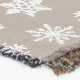 A delicate, lacy snowflake pattern on a solid background with a striated, Ikat woven texture - white snowflakes on a deep taupe tan / stone ground