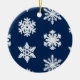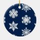 Ikat Snowflakes - White and Dark Navy Blue Ceramic Tree Decoration