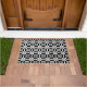 Doormat in a stylised, four-point star pattern with a striated, Ikat woven texture - White pattern on a black background