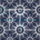 Navy and white starburst pattern inspired by ikat, shibori and tie dye styles of textiles, a stylish design.