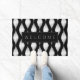 Ikat textile pattern custom welcome door mat. Add your own message, family name, monogram, surname or funny quote. Luxury gift idea for new home / housewarming or engagement / wedding party. Black and white or custom colour background. Stylish modern typography with wavy line print. Personalizable doormat sign template. Create your own entry mat / rug for front door / entryway or hall / venue. Customisable home decor / decorations for your house. Add your own monogram letter initials or surname. Beautiful fashion design for modern home.