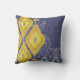 IKAT Uzbekistan Antique Tribal Pattern Navy Yellow Cushion