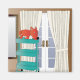 Coordinates with Ikea product: Barnslig Räv musical soft toy, Råskog kitchen cart, Ritva curtains, and Levanger mirror.