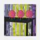 Striking decorative design featuring drawings of Ikea products: Ikea 365+ Lunta table lamp, Vika Amon/ Vika Alex table. Ikea Stockholm Blad fabric, and Sofia fabric.