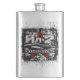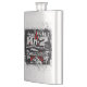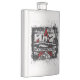 The product is a good size and came exactly as it was pictured.  The lid is not attached to the flask, which could be dangerous on drunken nights... The print came out surprisingly well and looks very sharp.  Would definitely recommend.