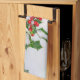 Red christmas holly berries, Ilex aquifolium, on a twig with spiny green leaves covered with snow on a cold December day in winter. This kitchen towel is a Christmas gift idea for nature lovers. Photo taken by Katho Menden.
