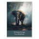 A thank you greeting card with "an elephant never forgets" theme. The text says: I'll never forget your kindness, with a message on the inside which can be personalised or left as is. Designed with a photograph of an Asian elephant with rounded ears standing in a forest clearing looking towards the viewer with sunlight streaming down through the canopy of trees.