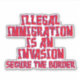 Red lettering outlined in blue, ILLEGAL IMMIGRATION IS AN INVASION SECURE THE BORDER. This design can be transferred to other products.