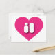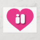 This postcard features a vibrant hot pink heart containing the bold, rounded, white lower case letters il, a playful version of the abbreviation for the state of Illinois, the prairie state. The reverse side of the postcard is blank, awaiting your handwritten sentiments or customised text.