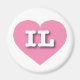 This magnet features a vibrant pink heart containing the bold, white, upper case letters IL, the official abbreviation for Illinois, the prairie state.