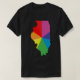 I give wanted to give this a 4 instead of a 5 because these Basic DARK T0shirts run unexpectedly SLIM or Narrow. Which is great if you do not have a potbelly, but I have a paunch. It isn't the shirt's fault that I've got a beer belly. The design and shirt itself is a quality cotton shirt. The color is more of a deep purple, but still a very pretty color. The Basic DARK T-shirts run a bit SLIMMER than the Basic Ts. The neck is a fraction narrower (or seems to be narrower) also. I'm a paunchy middle-aged woman and my neck is 12 inches (31cm) thick and the neckline fell about the same as in the photo of the man, and I had the desire to tug it a bit. So if you're a thick necked man or like loose shirts, be aware these are slimmer shirts. Once I get rid of my lockdown paunch it'll look great. The shirt washed well in cold water with no apparent bleeding. We don't have a dryer, so it hung dry. Did not shrink. Love the colors and the design. The design looks smaller on my shirt than it does on the model on-line. But still, it looks good on the shirt. The printing looks as it does on the model, just the size seems fractionally smaller. Washed garment in cold water, hung dry and design appeared unaffected.